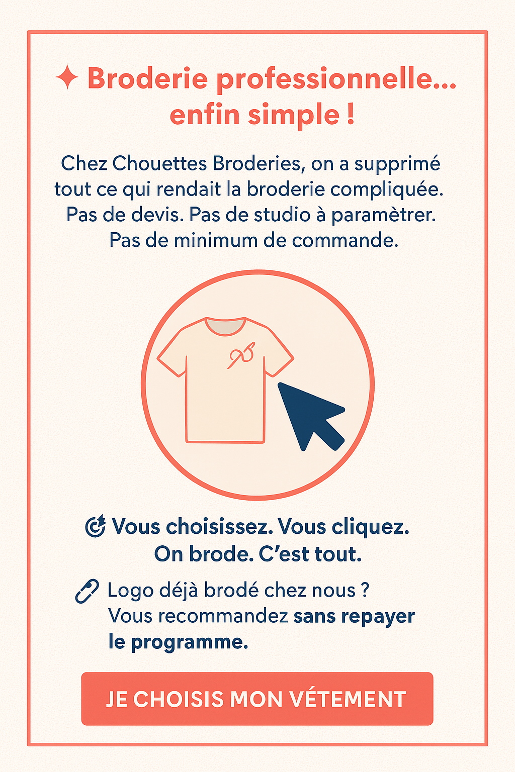 Chez Chouettes Broderies, on a supprimé tout ce qui ralentit la broderie personnalisée :